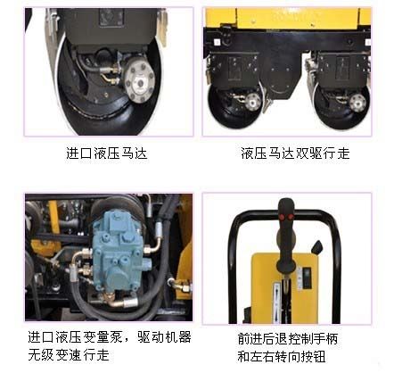 鼎誠(chéng)公司多年致力于小中型工程機(jī)械的研發(fā)與生產(chǎn),現(xiàn)在推出豪華版手扶式雙鋼輪壓路機(jī),此款機(jī)器采用國(guó)外先進(jìn)技術(shù),原裝進(jìn)口液壓馬達(dá),進(jìn)口液壓變量泵,無級(jí)變速,雙驅(qū)行走,自重840kg,振動(dòng)力可達(dá)3噸,前輪可液壓轉(zhuǎn)向,配備前進(jìn)后退手柄及左右轉(zhuǎn)向按鈕,工人一只手即可完成此款機(jī)器的操作,就是這么方便,就是這么給力。